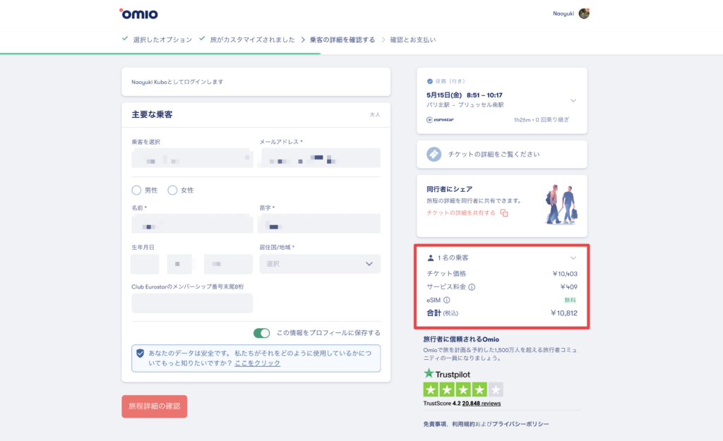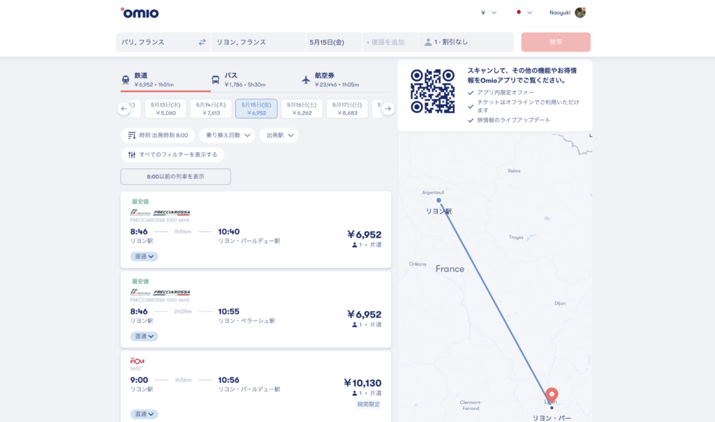Omioの一番のメリットというのが、ヨーロッパ各交通手段の料金の比較がしやすい点と、日本語対応、そして日本円対応しているので、購入までのフローが非常にスムーズであるという点にあります。